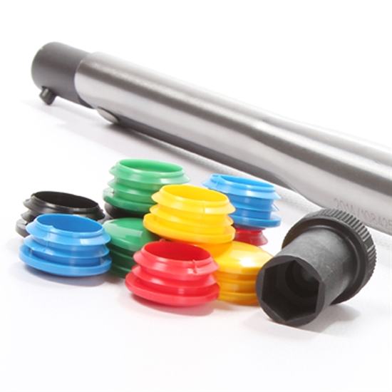 Coloured end seals are provided to identify the wrench to a particular operator, torque setting or calibration period.
